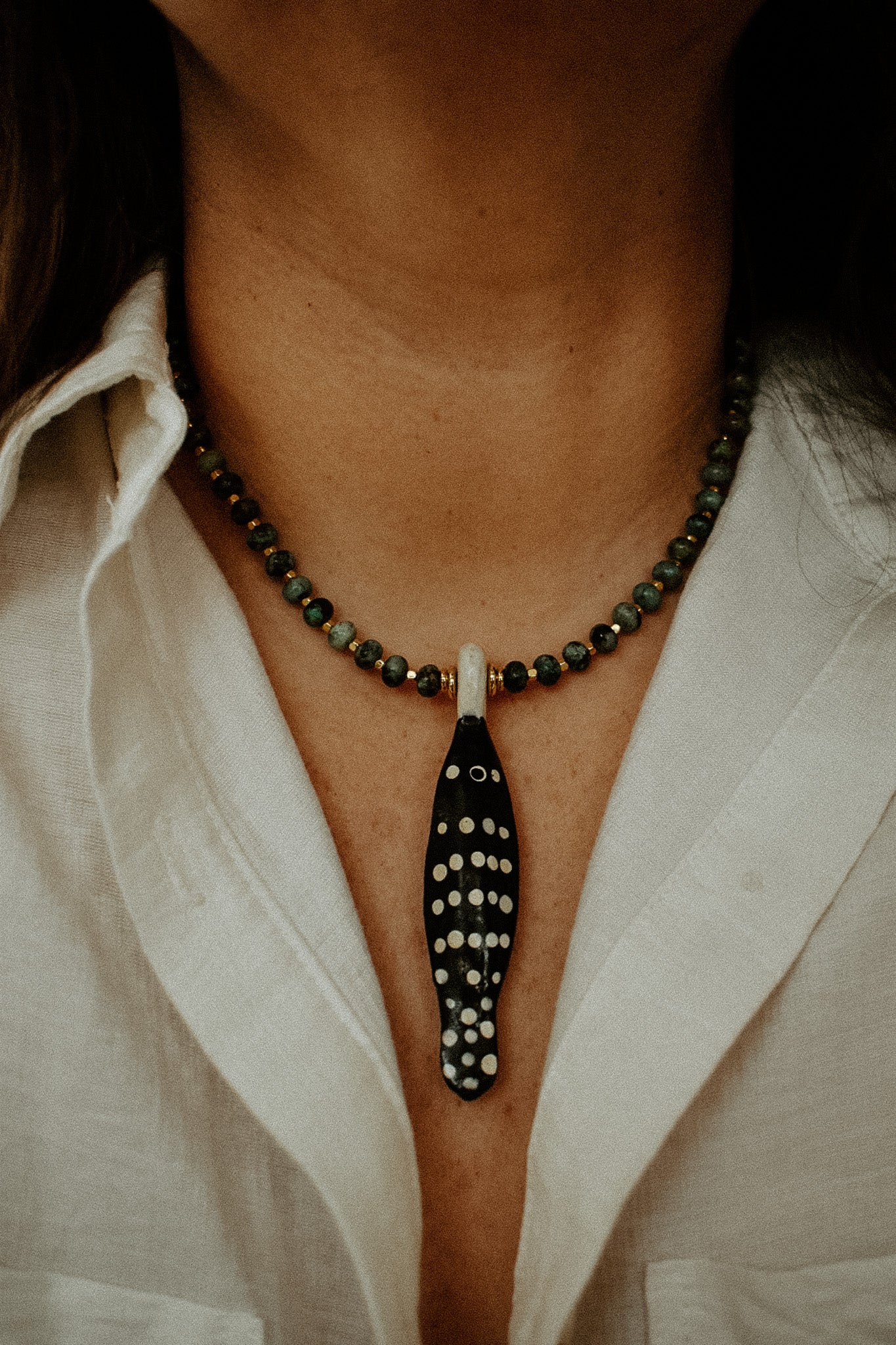 - vintage hand carved fish wooden pendant from the Philippines
